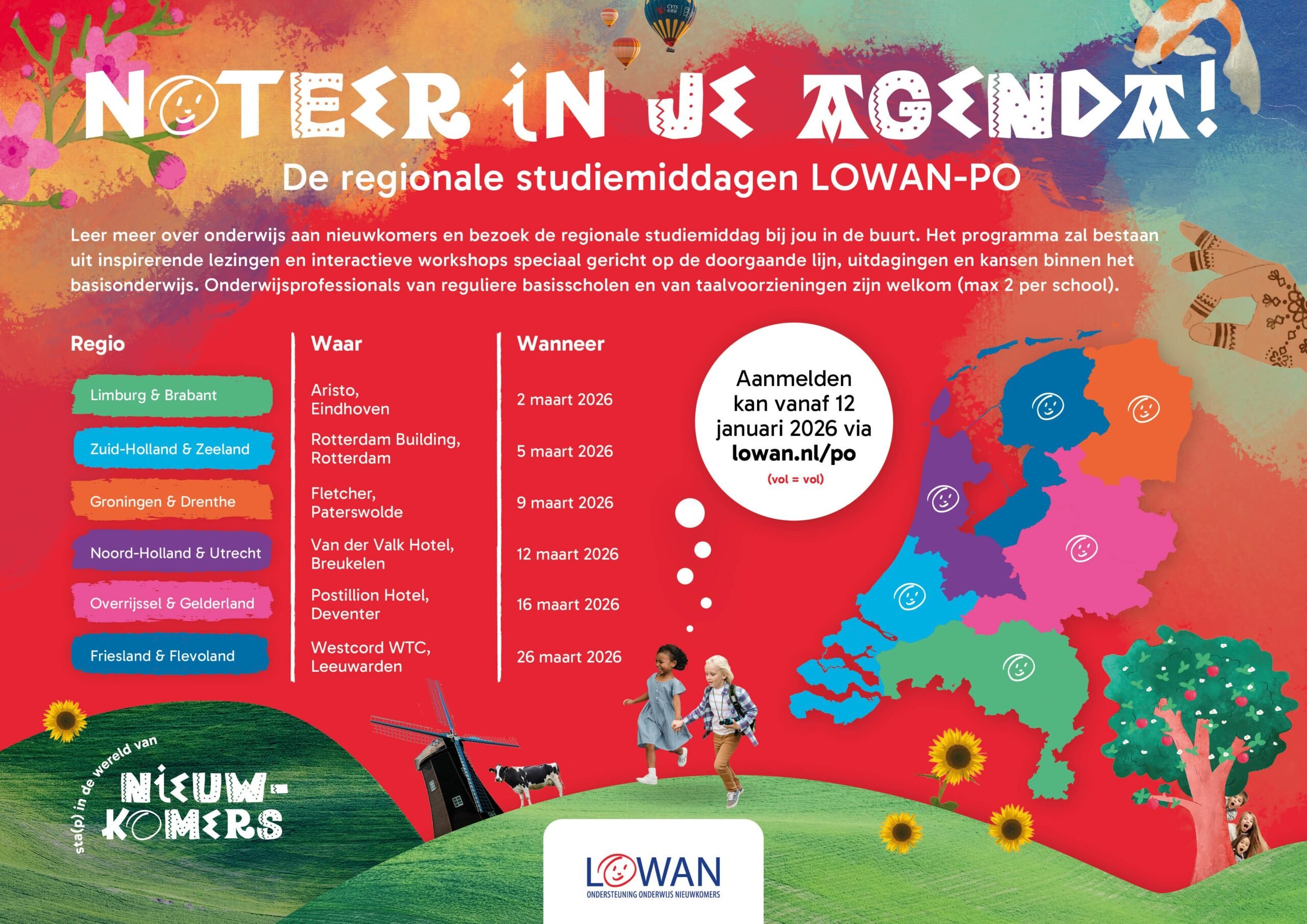 Leer meer over onderwijs aan nieuwkomers en kom naar de LOWAN-PO studiemiddag bij jou in de regio!