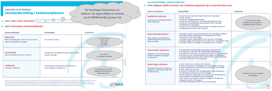 Maak er een gewoonte van om bij iedere les naast het rekendoel ook taalsteun te plannen . Je sluit daarmee niet alleen aan bij de onderwijsbehoeften van nieuwkomersleerlingen, maar ook bij die van andere leerlingen. Hieronder een voorbeeld.