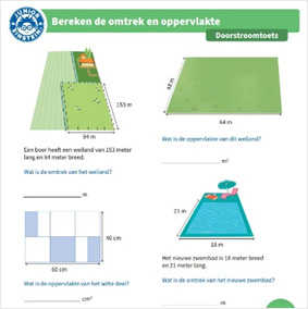 - Plan bij het niveau van de leerlingen een doel uit de LOWAN-leerlijn rekenen. Voor dit voorbeeld nemen we een rekendoel uit groep 5-6: De leerling benoemt en rekent de oppervlakte en omtrek uit.